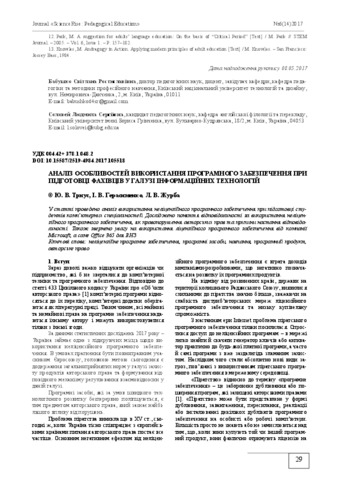 - Триус, Ю.В. (orcid.org/0000-0002-0739-2065), Герасименко, І.В. (orcid.org/0000-0001-6678-8142) and Журба, Л.В. (2017) Analysis of using software while training students of computer specialties ScienceRise: Pedagogical Education, 6 (14). pp. 29-35.
