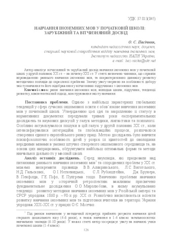 - Пасічник, Олександр Сергійович (orcid.org/0000-0002-0665-2099) (2017) Foreign language learning at primary school: Ukrainian and foreign experience Проблеми сучасного підручника, 1 (18). pp. 126-139. ISSN 2411-1309