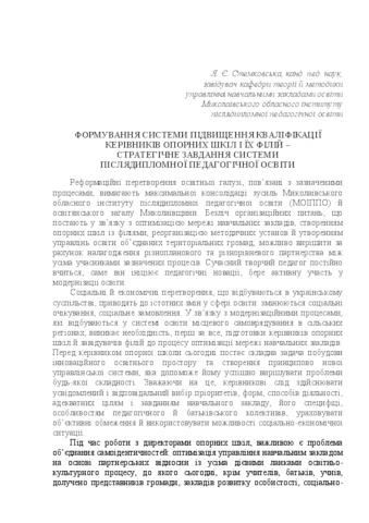 - Стемковська, Ярослава Євгенівна (2017) The formation of the training of heads of support schools and their branches as the strategic objective of postgraduate pedagogical education Керівник нової української школи: світоглядно-професійні орієнтири. pp. 158-161.