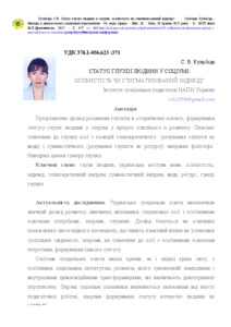 | Keywords: | deaf people, Ukrainian Sign Language, personality, individual, technocratic direction humanistic direction, defect, resource, deaf humor |