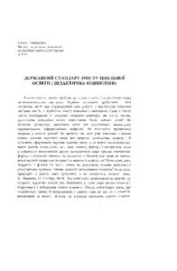 The State Standard of Education is considered as a social ideal and an educational standard taking into account the real possibilities of a person and the educational system of the country to achieve them. The State Standard is considered as a general approach to forming integral educational system of Ukraine ensuring consistency of all educational programmes, creation of real conditions for integrity of education. The State Standard must provide for the organic unity of the educational sphere of Ukraine under keeping a variety of educational institutions: schools, licees, colleges etc. The Standard envisages normal educational loading hours for pupils, its content should be easily understood and be within their power to comprehend it. A system of estimation of mastering the teaching material is a basic part of the Standard ensuring greater objectivity of evaluation of teacher’s, pupil’s and school’s work. The introduction of the Standard should guarantee the real differentiation of educational process, give pupils the opportunity to realize their educational „straight lines”.
