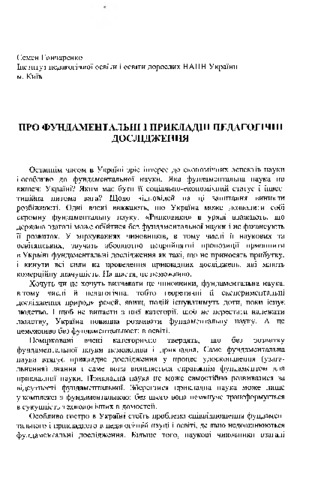 - Гончаренко, Семен Устимович (2010) Fundamental and applied pedagogical research Професійна освіта: педагогіка і психологія: пол.-укр., укр-пол.: щорічник, 12. pp. 113-124. ISSN ISBN 978-83-7455-172-4