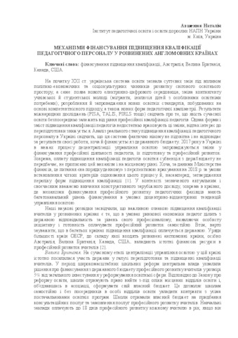 In theses analyzed the mechanisms of financing training of teaching staff in Australia, Britain, Canada and the United States.