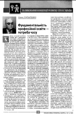 - Гончаренко, Семен Устимович (2005) Fundamentalness of vocational education is a need for time Професійно-технічна освіта, 1. pp. 5-6.