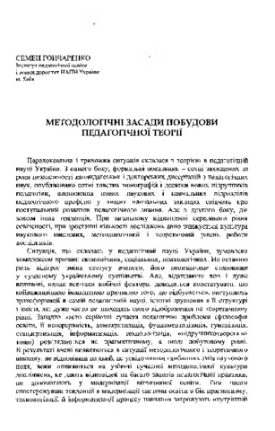 - Гончаренко, Семен Устимович (2012) Methodological principles of pedagogical theory’s construction Професійна освіта: педагогіка і психологія: пол.-укр., укр-пол.: щорічник, 14. pp. 37-49. ISSN 2083-2753