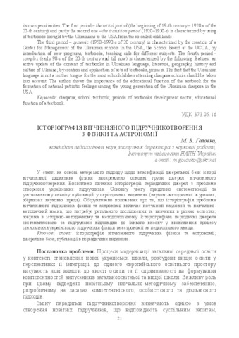 - Головко, Микола Васильович (2017) Historiography of creating homeland textbooks on physics and astronomy Проблеми сучасного підручника (18). pp. 21-34. ISSN 2411-1309