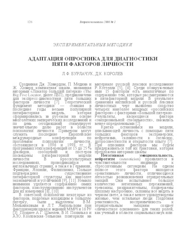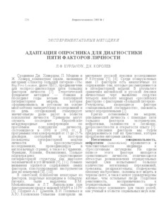 - Бурлачук, Л.Ф. and Корольов, Д.К. (2000) Adaptation of The Big Five Locator scale Вопросы психологии, 1. pp. 126-134. ISSN 0042-8841