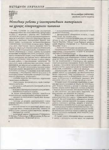 - Савченко, Олександра Яківна (2016) Method of working with illustrative material in literary reading lessons Початкова школа, 12 (570). pp. 4-10. ISSN 0131-5358