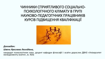 The features of the socio-psychological climate, the main components and factors of favorable social and psychological climate are reviewed; recommendations on pedagogical process control of optimization of socio-psychological climate conditions in adults postgraduate education are provided.
