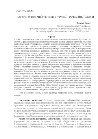 - Орлов, В.Ф. (2017) Сareer orientations for subjects of a modern professional school Науковий вісник Інституту професійно-технічної освіти НАПН України. Професійна педагогіка (13). pp. 15-21. ISSN 2223-5752