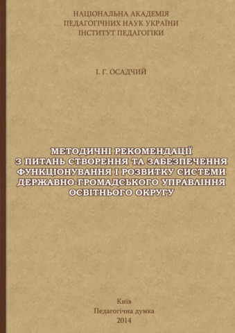 - Осадчий, І.Г. (2014) Methodical recommendations with a problem of creating and guarantee functioning and development system of a state-public management educational district [Teaching Resource] (Unpublished)