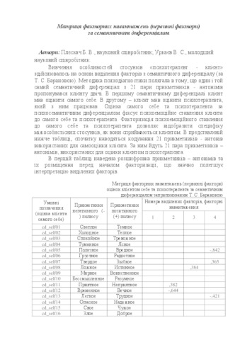 - Плескач, Б.В. (orcid.org/0000-0002-2215-6810) and Уркаєв, В.С. (2017) The matrix of factor loads (primary factors) by the semantic differential [Experiment] (Unpublished)