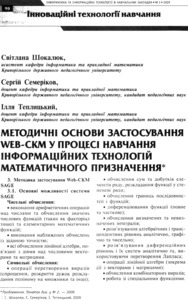 - Шокалюк, С.В., Семеріков, С.О. (orcid.org/0000-0003-0789-0272) and Теплицький, І.О. (2009) Methodological basis of a WEB-SCM using in learning information technology of mathematical destination Інформатика та інформаційні технології в навчальних закладах, 3. pp. 90-99.