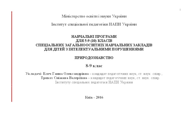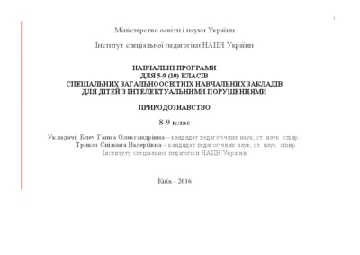- Блеч, Г. О. (orcid.org/0000-0003-4884-6024) and Трикоз, С. В. (orcid.org/0000-0002-5929-589X) (2016) Educational programs for 5-9 (10) classes of special general educational institutions for children with intellectual disabilities "Natural science" (grades 8-9) [Teaching Resource]