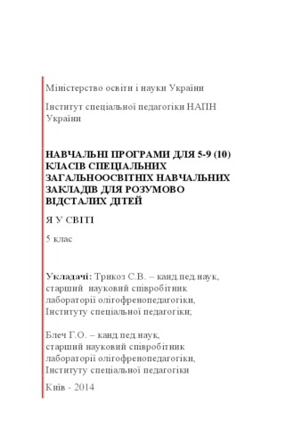 - Трикоз, С. В. (orcid.org/0000-0002-5929-589X) and Блеч, Г. О. (orcid.org/0000-0003-4884-6024) (2014) Educational programs for 5-9 (10) classes of special secondary schools for mentally retarded children. I am in the world. Grade 5 [Teaching Resource]