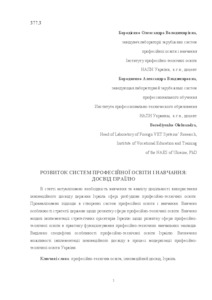 - Бородієнко, О.В. (2017) Development of vocational education and training systems: Israeli experience Теорія і методика професійної освіти, 1 (12).