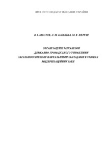 In the manual «Organizational mechanisms of state and public administration of general educational institutions in the conditions of modernization changes» (electronic edition) from the point of view of systemology and methodology of system analysis the essence and specificity of the phenomenon of management of a general educational institution and its concepts are revealed; the general laws of management of educational institutions on the basis of democratic and systemic and cybernetic principles, the tendencies of development of state and public administration in the field of education in the modern conditions are theoretically substantiated; practical discourse of state and public administration of educational institutions is presented in binary relation with management mechanisms and organizational mechanism as their kind. The manual can be used in the practical activity of the heads of educational institutions, in the system of professional development of management personnel, the school of reserve managers of education, training of masters in management specialty, scientists and researchers of management problems in the current conditions of the development of information society in the country.
