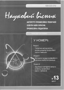 - Радкевич, В.О. (2017) Scientific basis of domestic professional education prestige improving Науковий вісник Інституту професійно-технічної освіти НАПН України. Професійна педагогіка, 1 (13). pp. 5-14. ISSN 2223-5752