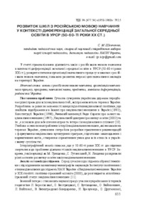 - Шевченко, Світлана Миколаївна (2014) The development of schools with the Russian language of instruction in the context of the differentiation of general secondary education in the Ukrainian SSR (50-60s of the 20th century) Problems of the modern textbook (14). pp. 833-842. ISSN ISBN 978-966-644-248-5