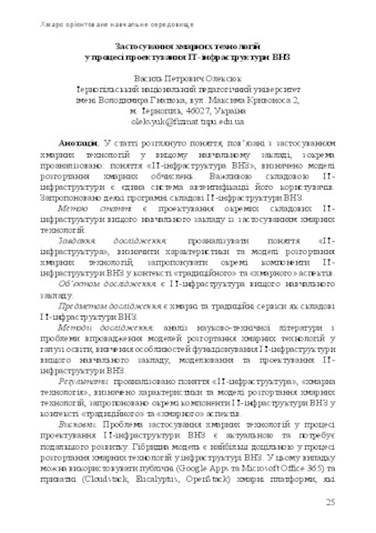 - Олексюк, Василь Петрович (orcid.org/0000-0003-2206-8447) (2014) Cloud technologies in the process of higher educational institution IT infrastructure projecting New computer technology (12). pp. 25-39. ISSN 2309-1460