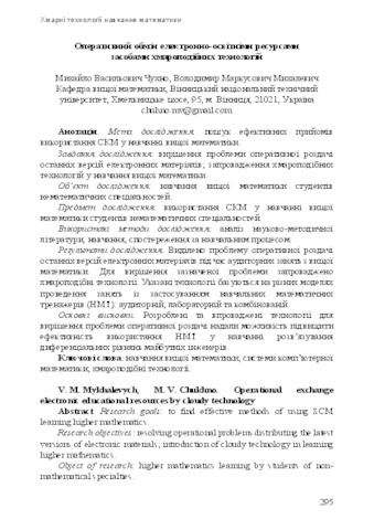 - Чухно, М.В. and Михалевич, В.М. (2014) Operational exchange electronic educational resources by cloudy technology New computer technology (12). pp. 295-300. ISSN 2309-1460