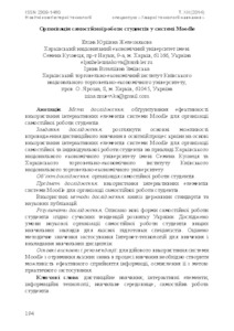Research goals: to study efficiency of interactive elements of Moodle system for students' independent work. Research objectives: to determine the basic possibility of introducing e-learning in the educational process of the country through the use of interactive elements of Moodle for organizing independent and individual work of students as an example of Kharkiv National Economic University named after Semyon Kuznets and Kharkiv Institute of Trade and Economics of Kyiv National University of Trade and Economics. Object of research: organization of independent work of students. Subject of research: the use of interactive elements of Moodle system for the organization of students' independent work. Research methods used: analysis of state standards and publications. Results of the research. We describe new forms of independent work by modern trends in Ukraine . The conditions of the scientific organization of independent work of students in higher education for quality training. Reviewed methodological value use of Internet technology for learning and teaching disciplines. The main conclusions and recommendations: for an effective use of Moodle to obtain qualitative knowledge in the learning process is necessary, we believe that the opportunity to create an effective information perception, understanding it for practical application.