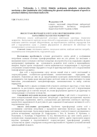 | Divisions: | Mykola Yarmachenko Institute of special education and psychology of National academy of educational sciences of Ukraine > Лабораторія сурдопедагогіки |