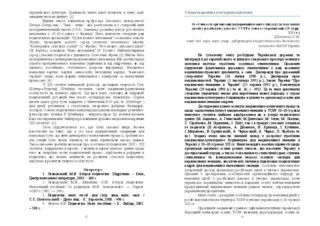 - Шевченко, Світлана Миколаївна (2012) Features of the organization of a differentiated approach to the study of children in Russian schools of the Ukrainian SSR under the conditions of Ukrainianization (20s of the 20th century) Рациональное применение научных знаний : материалы XXVII Международной научно-практической конференции по философским, филологическим, юридическим, педагогическим, экономическим, психологическим, социологическим и политическим наукам, 2. pp. 46-52. ISSN ISBN 978-966-2788-08-2 (общий); ISBN 978-966-2788-10-5 (часть 2)