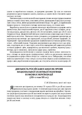The thesis presents the activities of Russian schools as a manifestation of the national educational policy in the conditions of Ukrainization (1920s).