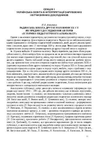 - Антонець, Наталія Борисівна (orcid.org/0000-0002-7772-9364) (2014) Soviet school in the second half of the twentieth century. As an object of study of authors (historical and pedagogical almanac) In: Problems of modern historical and pedagogical studies of school education. Collection of Abstracts and Annotated Materials of the All-Ukrainian Historical Pedagogical Scientific and Practical Conference . Інститут педагогіки НАПН України, м. Київ, Україна, pp. 11-12.