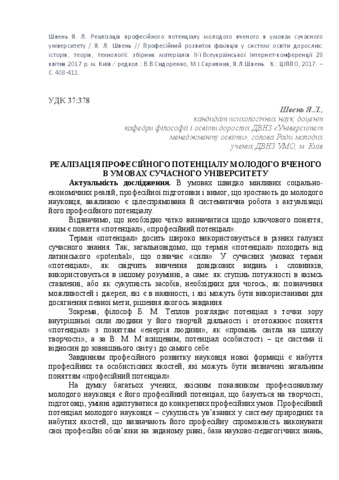 - Швень, Я. Л. (2017) Perfection of professional potential of young scientists in the modern university Професійний розвиток фахівців у системі освіти дорослих: історія, теорія, технології: збірник матеріалів ІІ-ї Всеукраїнської Інтернет-конференції 28 квітня 2017 р. pp. 408-411.