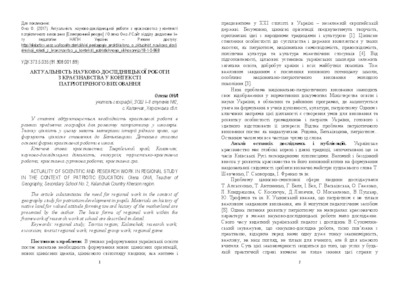 - Она, Олена Віталіївна (2017) Actuality of scientific and research work in regional study in the context of patriotic education Відділ дидактики Інституту педагогіки НАПН України. pp. 1-7.