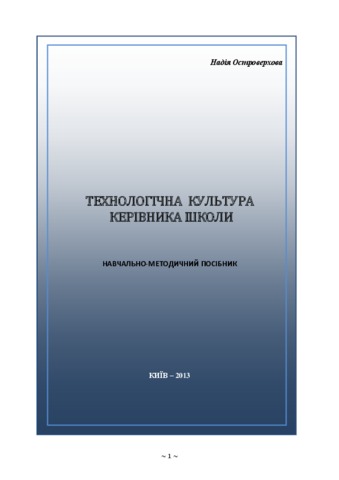 Островерхова, Н.М. (2013) Technological culture of the head of the school . Вид-во Національного педагогічного університету імені М. П. Драгоманова, м. Київ, Україна. (Unpublished)