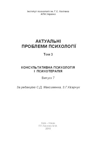 | Divisions: | Institute of Psychology after N.Kostiuk > Department of consulting psychology and psychotherapy |
