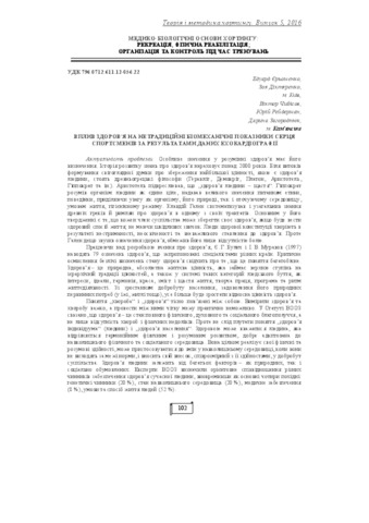 - Єрьоменко, Е.А. (orcid.org/0000-0002-8029-2247), Чибісов, В.І., Рейдерман, Ю.І., Загороднюк, Д.А. and Діхтяренко, З.М. (orcid.org/0000-0003-1869-7494) (2016) Impact of health on innovative biomechanical performance athletes heart on the results of echocardiography data Теорія і методика хортингу, 5. pp. 102-111. ISSN 2410-5317