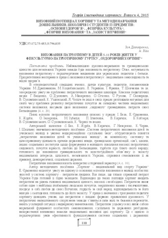 2015 Діхтяренко З. ТМХ, № 4 ВИХОВАННЯ ПАТРІОТИЗМУ В ДІТЕЙ 5–11 РОКІВ ЖИТТЯ У.pdf Download (264kB) | Preview |