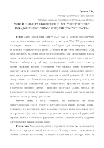 Language and Сulture in the context of the participation of universities in building a peaceful and open society