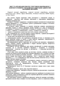The report describes the content and organization of work with textual information in the context of developing administrative and leadership skills of primary school students. The system of tasks for working with texts is proposed to be formed according to the author's consistently symmetric technology. Organization of work with textual information is suggested to be performed by the way of applying a number of models of cooperation and interactive learning technologies for students.
