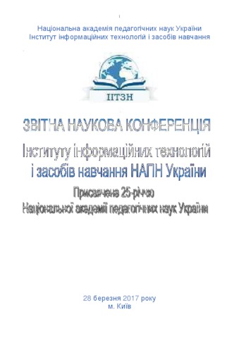 - Юнчик, В.Л. and Гриб'юк, О.О. (2017) The use of social networking in the process of preparation of future teachers of mathematics In: Звітна наукова конференція Інституту інформаційних технологій і засобів навчання НАПН України: Збірник матеріалів наукової конференції . Інститут інформаційних технологій і засобів навчання НАПН України, м. Київ, Україна, pp. 22-26.