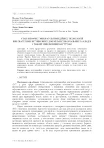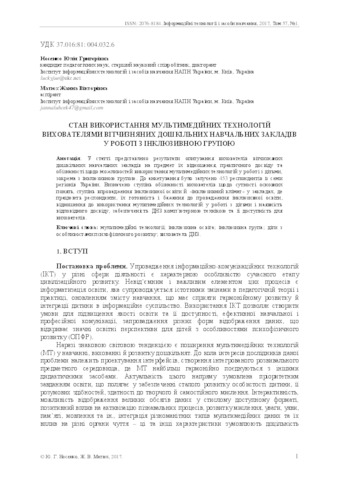 - Носенко, Ю.Г. and Матюх, Ж. В. (2017) State of using myltimedia techology by ukrainian pre-shohool educators in work with inclusive group Інформаційні технології і засоби навчання, 1 (57). pp. 1-11. ISSN 2076-8184