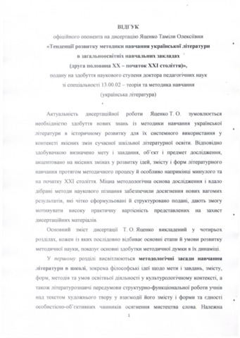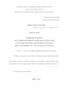 - Яценко, Таміла Олексіївна (2017) The Tendencies of Development of Methods of Teaching the Ukrainian Literature in Secondary Schools (Second Half of XX – Beginning of XXI Century) Masters thesis, Київський університет імені Бориса Грінченка.
