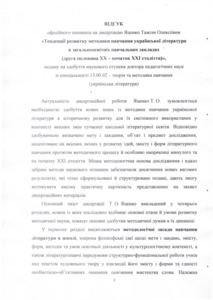The author of the thesis «The Tendencies of Development of Methods of Teaching the Ukrainian Literature in Secondary Schools (Second Half of XX – Beginning of XXI Century)» scientifically substantiated the main trends in the development of domestic subject methodology and revealed the possibilities for creative use of productive methodological experience in the development of modern school literary education. The necessity for holistic exposure of historical origins in the methods of teaching Ukrainian literature, identifying key trends in its development, critical rethinking of methodological heritage in the context of constructive filling the content, forms and methods of modern literary education and an optimal ensuring its practical results are proved. The concept «trends in the development of Ukrainian literature teaching methodology» is suggested, defining as a systematic collection of qualitative changes in the development of ideas, content, methods, techniques and organizational forms, which are typical for the subject didactics of the concrete historical period. The scientific novelty of the dissertation’s outcomes is that for the first time: the formation and trends in the development of Ukrainian literature teaching methodology as a system of scientific knowledge, the change of which is accompanied by the evolution of the scientific content of the methodological knowledge and its productive use in the process of schooling literature are integrally described; the complex of philosophical, literary, psychological and pedagogical factors, historical and cultural, social conditions determining vectors of methodical searches is revealed; the periodization of the literary school education genesis on cultural basis is proposed and scientifically argued; the contribution of the progressive leaders in education and culture on the formation of domestic methodical thinking is analyzed; the achievements and contradictions in the development of literature teaching methods in the period of the Soviet school are identified; the features for restructuring literary education in the conditions of national school approval are clarified; the main trends in the development of new methods in teaching Ukrainian literature in school are identified and described (a systematic approach to content, methods and forms of teaching literature; standardization of the content and results of school literary education; personality-oriented literature teaching, competency-based paradigm of school literary education; the use of information and communication technologies in the school course of literature, the specialization of school literary education); the definition of «trends» as a key category of pedagogy is concretized, and the concept of «trends in the development of methods in teaching Ukrainian literature» is formulated; the new methodological concepts, actualization of which contributes to the deepening of professional knowledge about the regularities of subject didactics development and opportunities of qualitative filling content and form as a school literary education and vocational training of teachers-philologist, are introduced into the scientific circulation; the ideas of humanization and humanitarization of school literary education, intersubject teaching Ukrainian literature in school, informatization and technologization of its learning process, integration of interartistic and interscientific knowledge in the school course of literature were further developed.