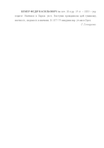 - Гончаренко, Семен Устимович (2001) Bemer Fedor Vasilyevich Педагогічний словник. p. 50.