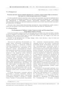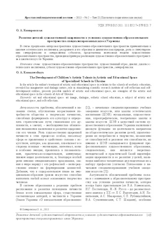 - Комаровська, О.А. (2013) The Development of Children's Artistic Talents in Artistic and Educational Space of Specialized Schools in Ukraine Ярославский педагогический вестник. – Том II (Психолого-педагогические науки), 2. pp. 143-148.