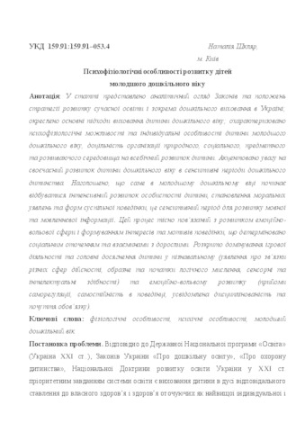 - Шкляр, Н.А. (2016) Psychophysiological characteristics of junior preschool age development Наукові записки (3). pp. 42-49.