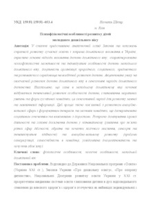 | Keywords: | : physiological characteristics, mental characteristics, junior preschool age. |