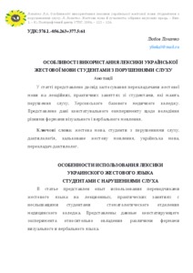 | Keywords: | sign language, students with hearing impairment, Dactylology, Ukrainian language, interpreter |