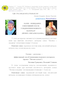 - Грищенко, Є.С. and Стьопкін, В.В. (2006) Fairytales, Narrations as an effective Method of the linguistic Material Awareness (Project “We read Fairytales”) Жестова мова й сучасність, 1. -175. ISSN 966-8663-16-0