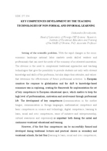 - Borodiyenko, Oleksandra (2017) Key competences development of future specialists by the teaching technologies of non-formal and informal learning Науковий вісник Інституту професійно-технічної освіти НАПН України. Професійна педагогіка, 13. pp. 50-58. ISSN 2223-5752