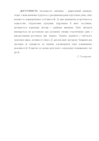 - Гончаренко, Семен Устимович (2001) Аccessibility of learning Педагогічний словник. p. 162.